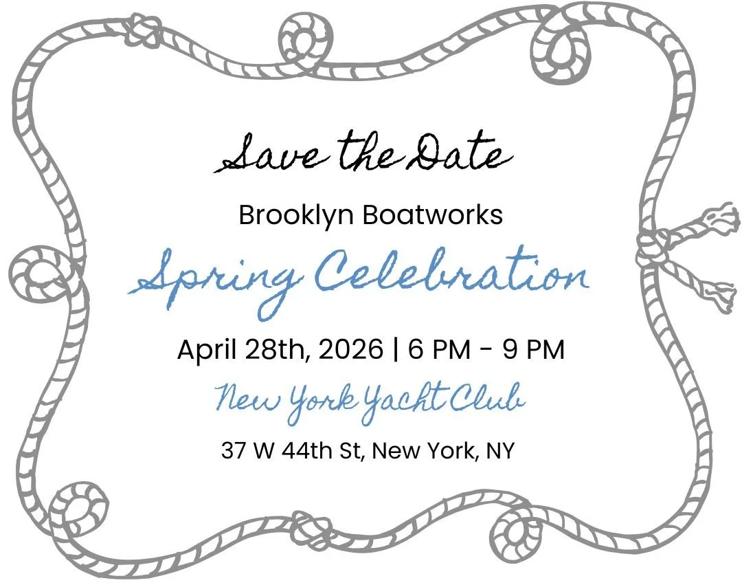 We are delighted to announce that Brooklyn Boatworks' annual Spring Celebration will be held on Tuesday, April 28th at the New York Yacht Club from 6 PM - 9 PM!